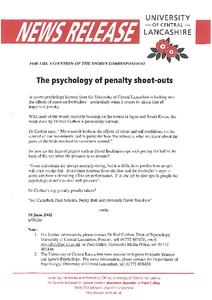 Media and Promotion Office (2002) News release: The psychology of penalty shoot-outs. Other. University of Central Lancashire (UCLan), Preston.