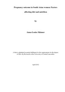 Skinner, Anna-Louise (2012) Pregnancy outcome in South Asian women: Factors affecting diet and nutrition. Masters thesis, University of Central Lancashire.