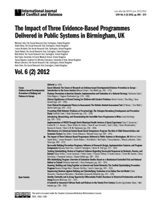 Little, Michael, Berry, Vashti Louise, Morpeth, Louise, Blower, Sarah, Axford, Nick, Taylor, Rod, Bywater, Tracey, Lehtonen, Minna and Tobin, Kate (2012) The impact of three evidence-based programmes delivered in public systems in Birmingham, UK. International Journal of Conflict and Violence, 6 (2). pp. 260-272. ISSN 1864-1385