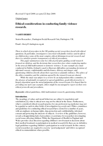 Berry, Vashti Louise (2009) Ethical Considerations in Conducting Family Violence Research. Research Ethics, 5 (3). pp. 91-100. ISSN 1747-0161