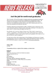 Media and Promotion Office (2002) News release: Just the job for north west graduates. Other. University of Central Lancashire (UCLan), Preston.