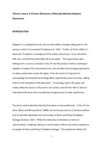Themes, Issues and Practice Dilemmas in Ethnically Matched Adoption Placements.