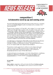 Media and Promotion Office (2002) News release: composition C Collaborative work by up-and-coming artist. Other. University of Central Lancashire (UCLan), Preston.