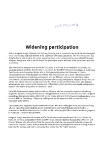 Media and Promotion Office (2002) News release: Widening participation. Other. University of Central Lancashire (UCLan), Preston.