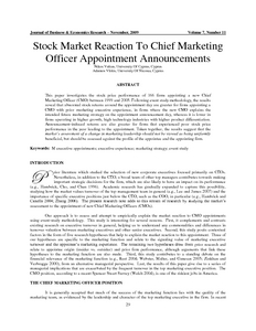 Vafeas, Nikos and Vlittis, Adamos (2009) Stock Market Reaction To Chief Marketing Officer Appointment Announcements. Journal of Business & Economics Research, 7 (11). pp. 29-40. ISSN 1542-4448