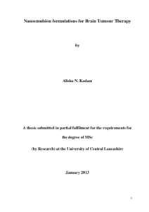 Kadam, Alisha Naresh (2013) Nanoemulsion formulations for brain tumour therapy. Masters thesis, University of Central Lancashire.