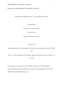 Measurement of Sibling Violence: A Two-Factor Model of Severity.