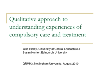 Qualitative approach to undertstanding experiences of compulsory care and treatment.