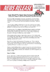 Media and Promotion Office (2004) News release: High Sheriff To Open New Computing Building. Local school children to demonstrate handwriting recognition technology. Other. University of Central Lancashire (UCLan), Preston.