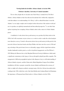 This article examines work by a variety of African Atlantic artists who investigated slavery and memory in the 1990s. They range from the maverick African-American artists and interventionists, Kara Walker and Fred Wilson, through the Cuban artist, Maria Magdalena Campos-Pons, to the Black British artist, Lubaina Himid. The article will discuss thematic and compositional synergies around the circum-Atlantic and illustrate the currency of what we might call a diaspora aesthetic amongst many of the best African-descended artists working in the 1990s. The article will argue that engagement with art from different geographical regions in the diaspora is key to a full understanding of African Atlantic art praxis in this period.