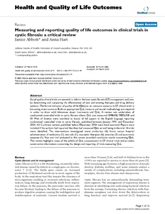 Measuring and reporting quality of life outcomes in clinical trials in cystic fibrosis: a critical review.