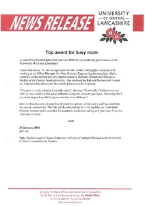 Media and Promotion Office (2004) News release: Top award for busy mum. Other. University of Central Lancashire (UCLan), Preston.