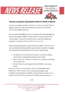 Media and Promotion Office (2003) News release: Preston Academic Spearheads National Health Initiative. Other. University of Central Lancashire (UCLan), Preston.