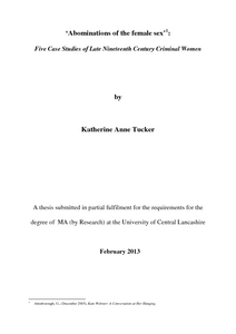 Tucker, Katherine (2013) “Abominations of the Female Sex”. Five cases of Late Nineteenth Century Criminal Women. Masters thesis, University of Central Lancashire.