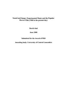 Abel, David (2008) Sound and Image: Experimental Music and the Popular Horror Film (1960 to the present day). Doctoral thesis, University of Central Lancashire.