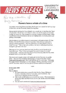 Media and Promotion Office (2003) News release: Rowers have a whale of a time. Other. University of Central Lancashire (UCLan), Preston.
