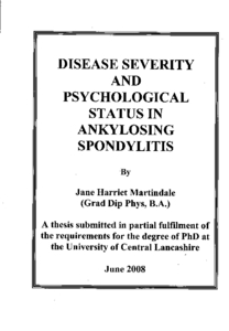 Martindale, Jane Harriet (2008) Disease severity and psychological status in ankylosing spondylitis. Doctoral thesis, University of Central Lancashire.