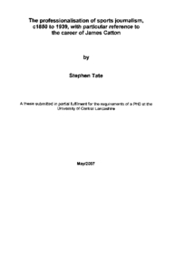 Tate, Stephen (2007) The professionalisation of sports journalism, c1850 to 1939, with particular reference to the career of James Catton. Doctoral thesis, University of Central Lancashire.