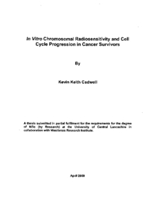 Cadwell, Kevin (2009) In Vitro Chromosomal Radiosensitivity and Cell Cycle Progression in Cancer Survivors. Masters thesis, University of Cenral Lancashire.