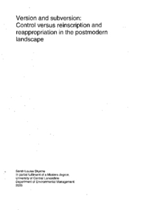 Skyrme, Sarah Louise (2005) Version and subversion: Control versus reinscription and reappropriation in the postmodern landscape. Masters thesis, University of Central Lancashire.