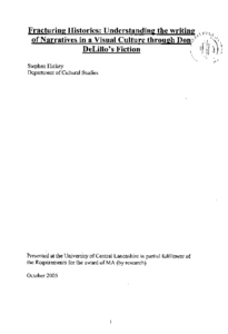 Hickey, Stephen (2005) Fracturing Histories: Understanding the writing of Narratives in a Visual Culture through Don DeLillo's Fiction. Masters thesis, University of Central Lancashire.