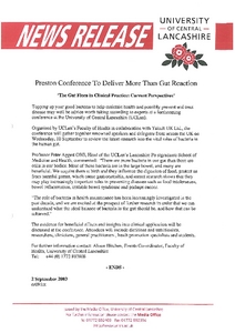 Media and Promotion Office (2003) News release: Preston Conference To Deliver More Than Gut Reaction. Other. University of Central Lancashire (UCLan), Preston.
