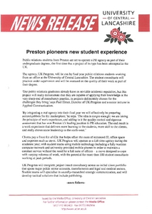 Media and Promotion Office (2003) News release: Preston pioneers new student experience. Other. University of Central Lancashire (UCLan), Preston.