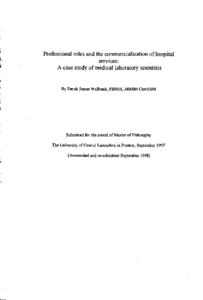 Wallbank, Derek James (1998) Professional roles and the commercialization of hospital services: A case study of medical laboratory scientists. Masters thesis, University of Central Lancashire.