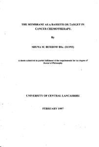 Burrow, Shuna M (1997) The Membrane as a barrier or target in cancer chemotherapy. Doctoral thesis, University of Central Lancashire.