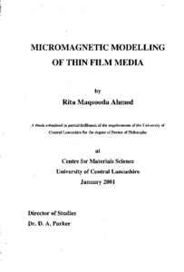 Ahmed, Rita Maqsooda (2001) Micromagnetic modelling of thin film media. Doctoral thesis, University of Central Lancashire.