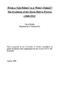 Hindle, David (2006) From a "Gin Palace" to a "King's Palace?" The Evolution of the Music Hall in Preston c1840-1914. Masters thesis, University of Central Lancashire.