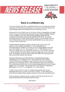 Media and Promotion Office (2003) News release: Stars in a different sky. Other. University of Central Lancashire (UCLan), Preston.