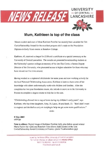 Media and Promotion Office (2003) News release: Mum, Kathleen is top of the class. Other. University of Central Lancashire (UCLan), Preston.
