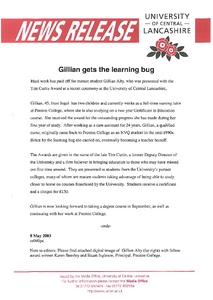 Media and Promotion Office (2003) News release: Gillian gets the learning bug. Other. University of Central Lancashire (UCLan), Preston.