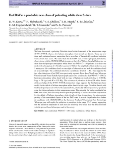 Kurtz, Donald Wayne orcid iconORCID: 0000-0002-1015-3268, Shibahashi, H., Dhillon, V. S., Marsh, T. R., Littlefair, S. P., Copperwheat, C. M., Gansicke, B. T. and Parsons, S. G. (2013) Hot DAVs: a probable new class of pulsating white dwarf stars. Monthly Notices of the Royal Astronomical Society, - (-). ISSN 0035-8711