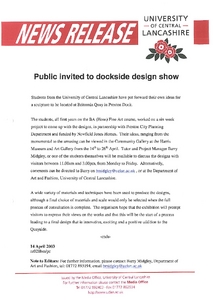 Media and Promotion Office (2003) News release: Public invited to dockside design show. Other. University of Central Lancashire (UCLan), Preston.