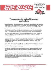 Media and Promotion Office (2003) News release: Youngsters get a taste of the caring professions. Other. University of Central Lancashire (UCLan), Preston.