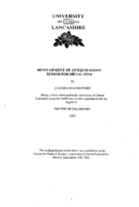 Shackleford, Stephen (2002) Development of an EQCM-based sensor for metal ions. Doctoral thesis, University of Central Lancashire.