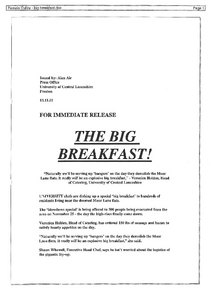 Media and Promotion Office (2001) News release: The Big Breakfast! Other. University of Central Lancashire (UCLan), Preston.