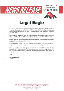 Media and Promotion Office (2001) News release: Legal Eagle. Other. University of Central Lancashire (UCLan), Preston.