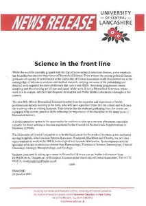 Media and Promotion Office (2001) News release: Science in the front line. Other. University of Central Lancashire (UCLan), Preston.