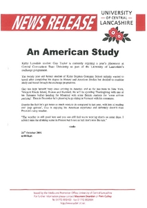 Media and Promotion Office (2001) News release: An American Study. Other. University of Central Lancashire (UCLan), Preston.