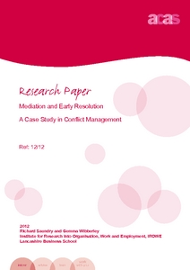 Saundry, Richard and Wibberley, Gemma (2012) Mediation and informal resolution – a case study in conflict management. Project Report. Acas.