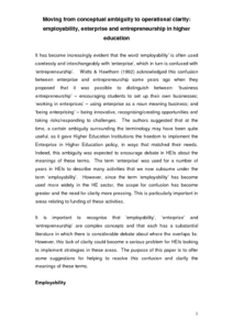 Originality/value – The paper offers a clear way of defining the concepts and will be of value to anybody with an interest in employability, enterprise or entrepreneurship within higher education.