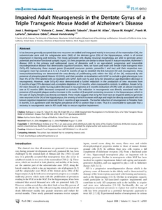 Impaired adult neurogenesis in the dentate gyrus of a triple transgenic mouse model of Alzheimer's disease.