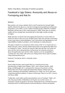 Facebook’s Ugly Sisters: Anonymity and Abuse on Formspring and Ask.fm.