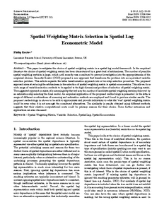 Spatial Weighting Matrix Selection in Spatial Lag Econometric Model.