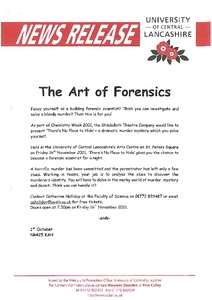 Media and Promotion Office (2001) News release: The Art of Forensics. Other. University of Central Lancashire (UCLan), Preston.
