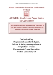 [thumbnail of Carolyn King - An evaluative review of evidence on the enactment of the non-statutory National Framework Agreement for Religious Education in England and Wales.pdf]