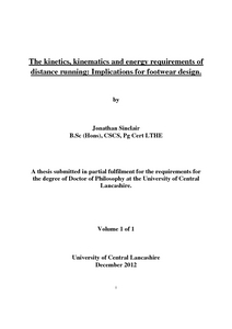 Sinclair, Jonathan (2012) The kinetics, kinematics and energy requirements of distance running: Implications for footwear design. Doctoral thesis, University of Central Lancashire.